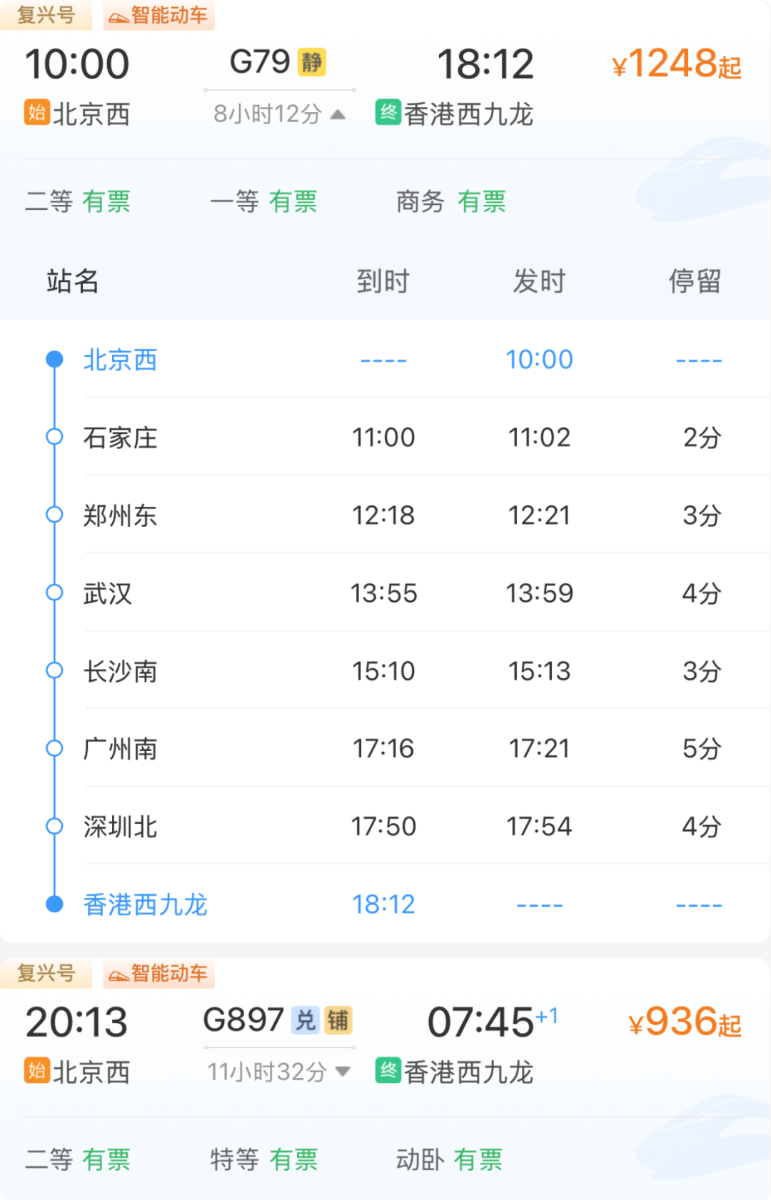 秋高气爽,不少小伙伴会在秋天选择出游,去香港你会选择坐飞机还是高铁?你会选择夕发朝至卧铺列车吗?
