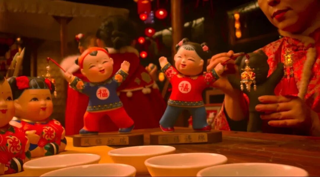 泥人摊位上,一个个胖嘟嘟的阿福阿喜让人心生欢喜。