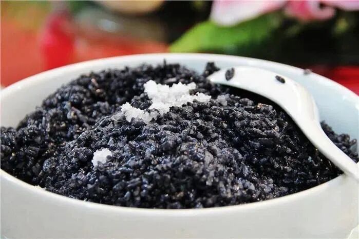 宜兴乌米饭用南烛叶汁水浸泡过的糯米蒸煮而成,清香扑鼻,软糯弹牙,《本草纲目》记载,乌米饭久服能轻身明目,黑发驻颜,益气力而延年不衰。