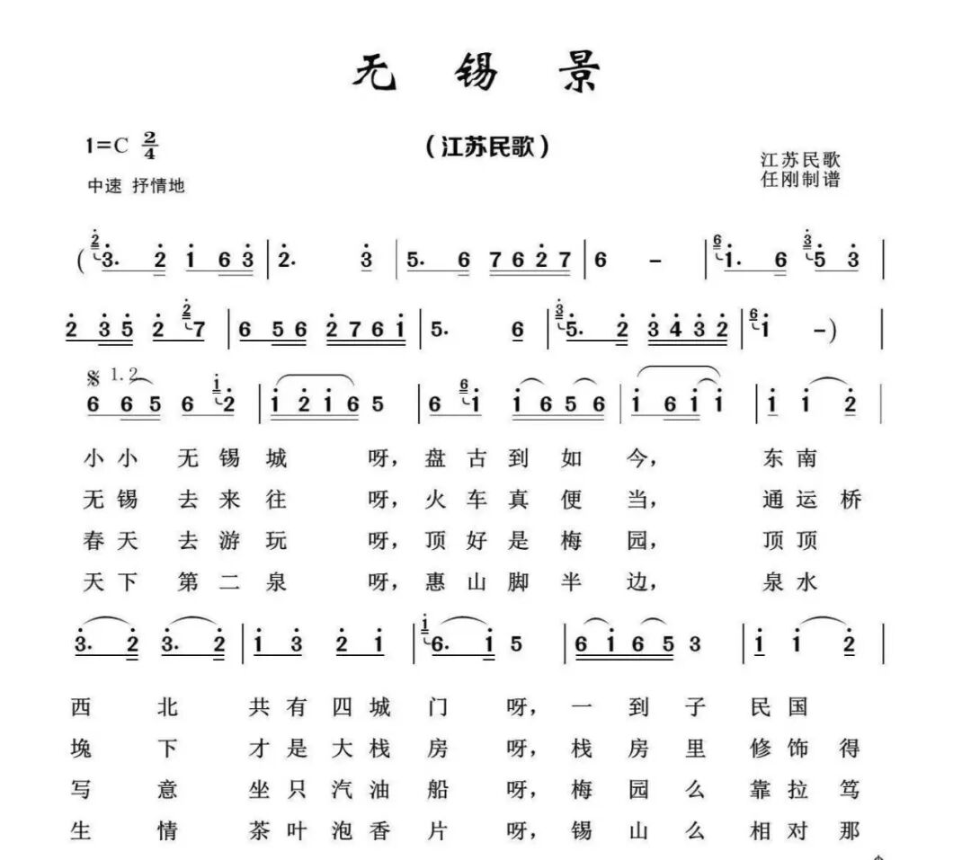 这首《无锡景》,又名《太湖美》。江南小调之一,旧称时调,可考源于清末民间。