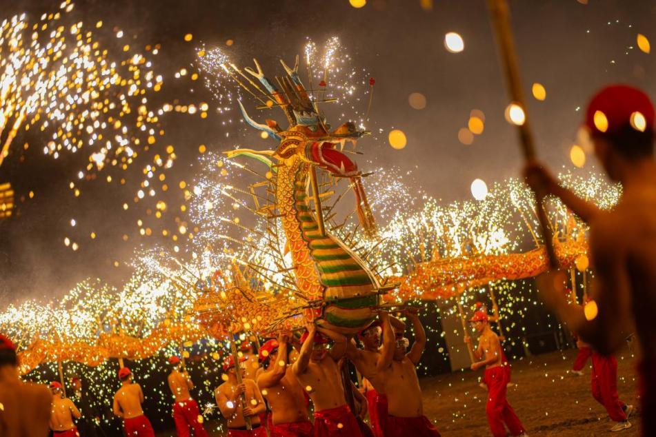 拈花湾的舞狮、舞火龙、花灯展示《醒狮贺岁》纷纷在春晚中亮相。