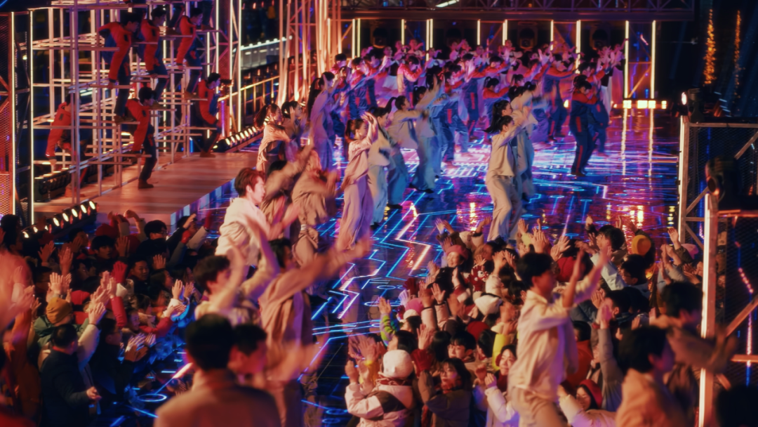 充满力量与节奏感的舞蹈,动感十足的旋律,交织出蓬勃激昂的时代号子在天地间回荡,展现出无锡的科技创新和社会发展: