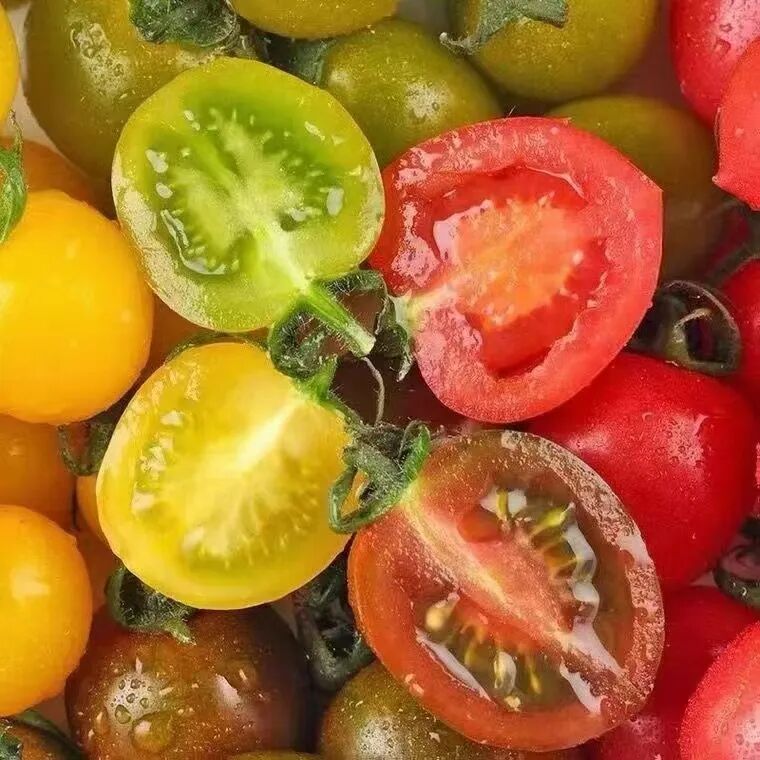 每一颗都茄香浓郁、果肉饱满、酸甜多汁……红黄绿搭配,大饱眼福的同时还能满足你挑剔的味蕾。“七彩”小番茄还有更多种“色彩”,欢迎来农场解锁。