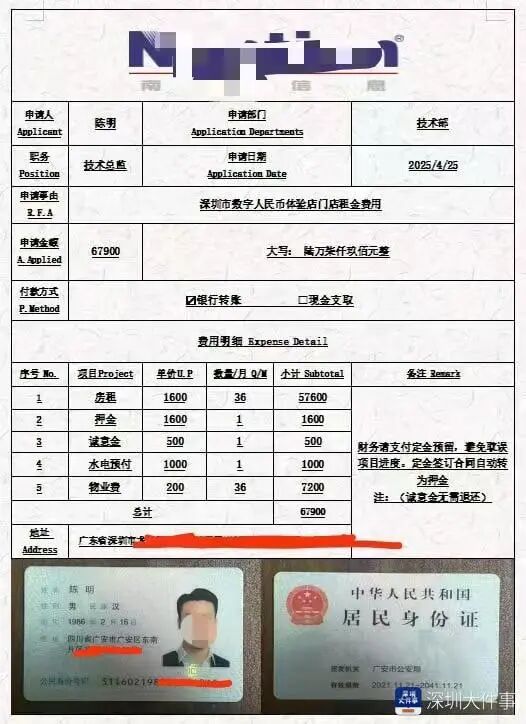 骗子所发的“工牌”和“身份证”,头像长相都差不多网友晒出的骗子费用申请表,格式都差不多。