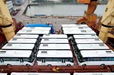 133辆白色国产大型柴油客车陆续装满货船