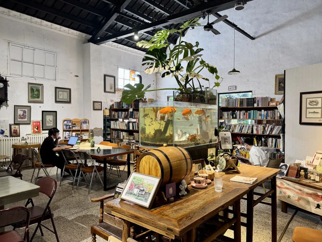 打开小红书搜索“无锡咖啡店”,“隐藏”在柴机新村弄堂里的“半两·浮生”咖啡书店,当属“顶流网红”,被网友称为“藏在市中心的森林咖啡”。