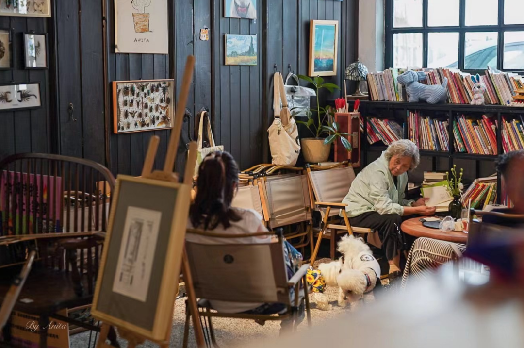工作日的午后,有人带着笔记本在这里安静工作,有人窝在沙发里翻阅二手书,有人只是来店里逗逗“毛孩子”……每个人都能在这里找到属于自己的舒适区。