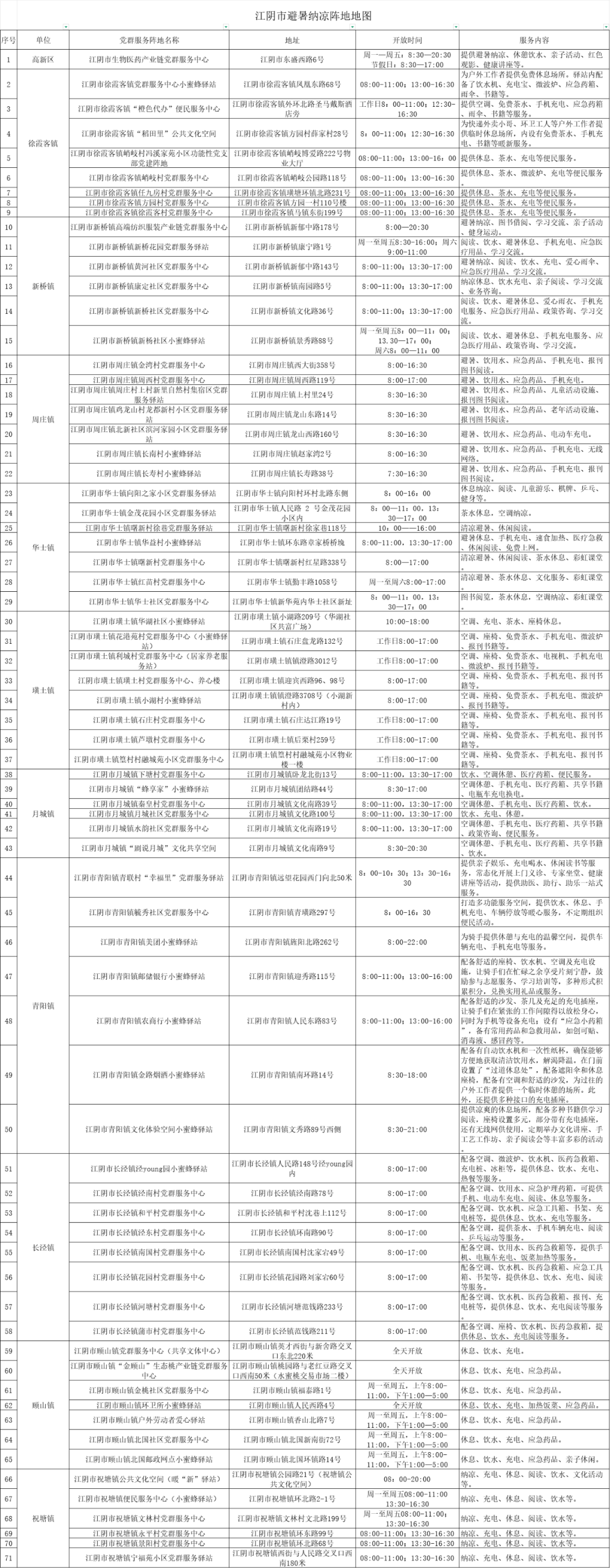 (上下滑动查看各乡镇街道清凉点位一览)