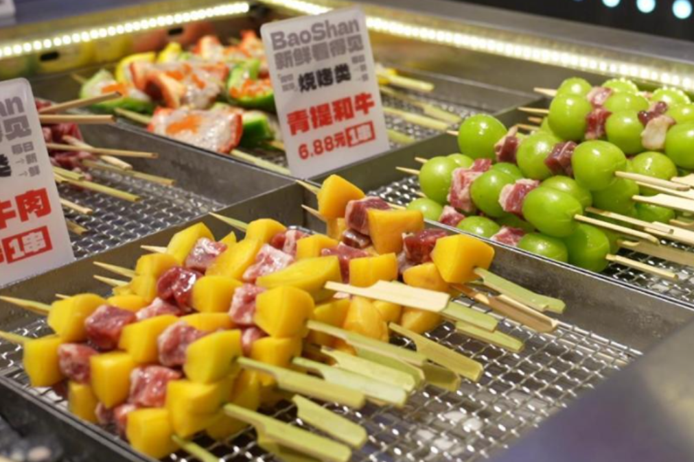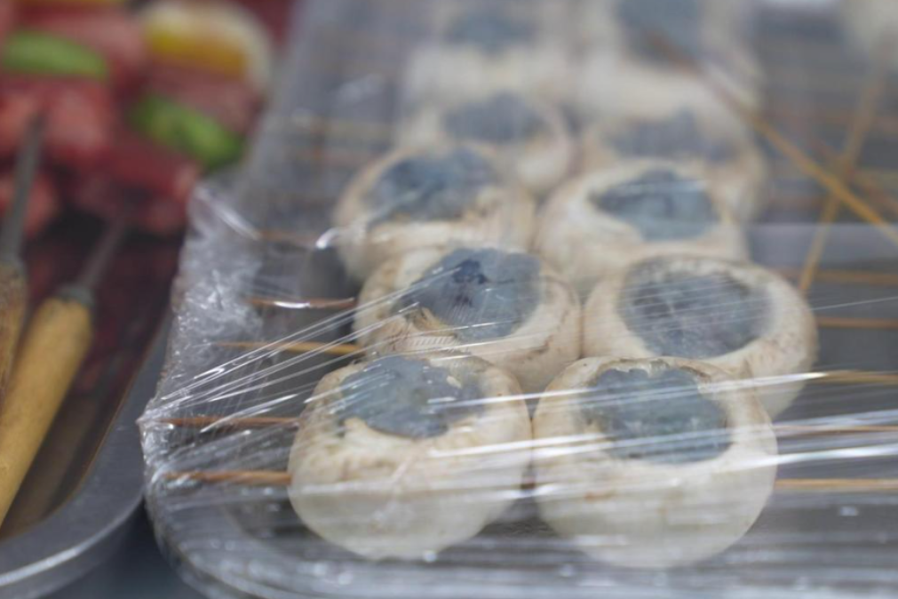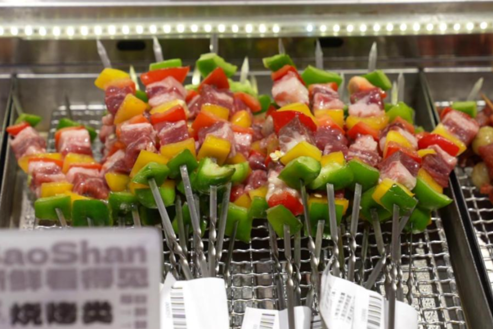 豆豆烧烤也是在江阴经营了10多年的烧烤老字号。店内一边是海鲜区,现点现烤的模式从源头锁住食材的本真鲜味,一边是烧烤区,串串整齐码好,琳琅满目,顾客可以自行挑选心仪的食材。
