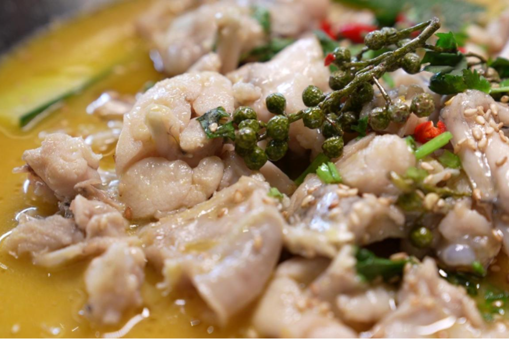 除了经典烤串,店里还有各式下酒菜,另外镇店特色也不容错过,整只烤全羊外皮酥脆、肉质鲜嫩,但需要提前预定;当季梭子蟹肥美无比,葱油味、香辣味都好吃;铁板鲫鱼肉质细腻,让人欲罢不能;还有开胃爽口的酸辣牛蛙、滑嫩暖胃的海鲜粥……10多年的匠心,都藏在这一口口热辣鲜香里,成为江阴人深夜食堂里戒不掉的味道。