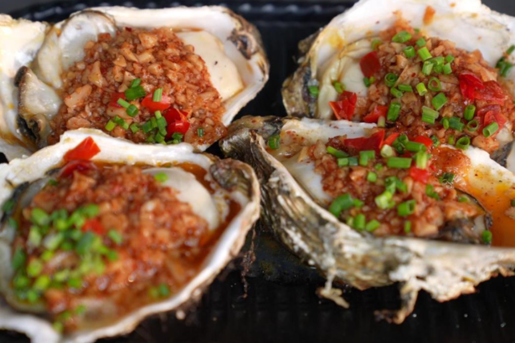 店里其余品种的烧烤也做得诚意满满,肥瘦相间的五花肉烤得滋滋冒油,油脂香混着炭火气直钻鼻腔;鲜香的豆皮鲜肉嚼起来口感丰富;生蚝个头饱满,秘制酱料早已渗透进每一丝肌理……搭配上爽口的下酒菜、冰镇啤酒,那感觉真的是夏天最痛快的滋味!