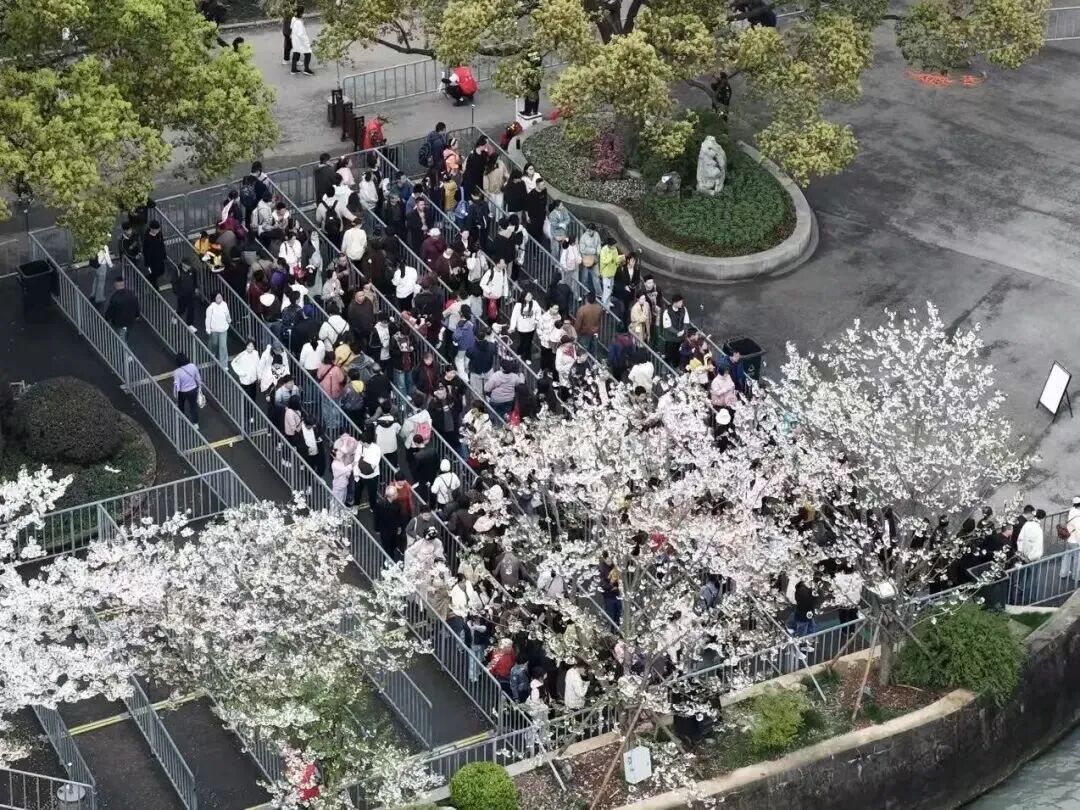 截至昨天早上九点,景区实时人流量已突破10000人,赏樱专线候车点人潮涌动,不少游客直呼“没想到有更早的”。