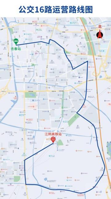 公交16路恢复原线及优化调整。由杏春站始发,沿南街—人民东路—绮山路—毗陵路—大桥南路—花东路—云南路—霞客大道—大桥南路—西桥路至江阴高铁站。