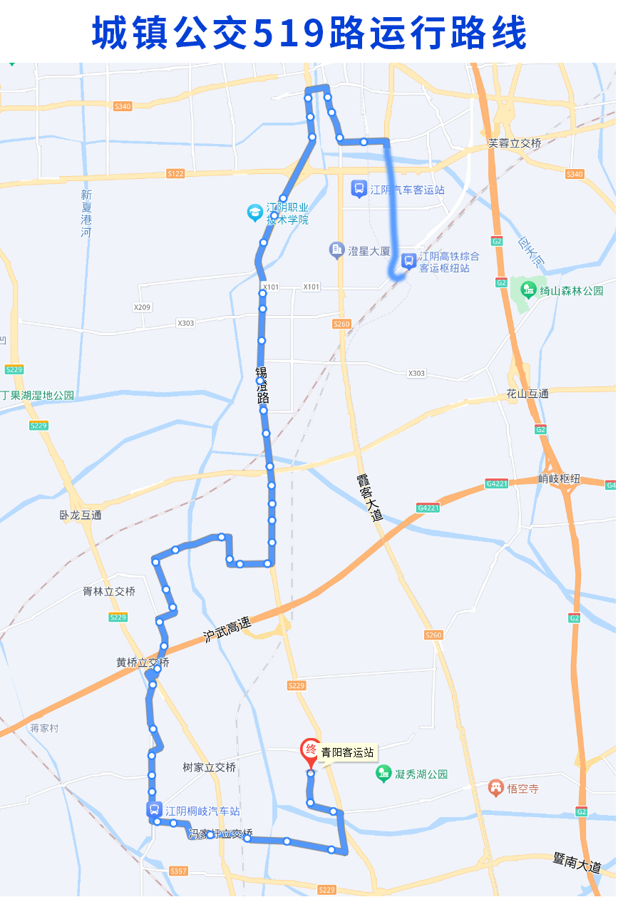 增加站点停靠:澄江驾校站、江阴高铁站、花北桥、花北路、