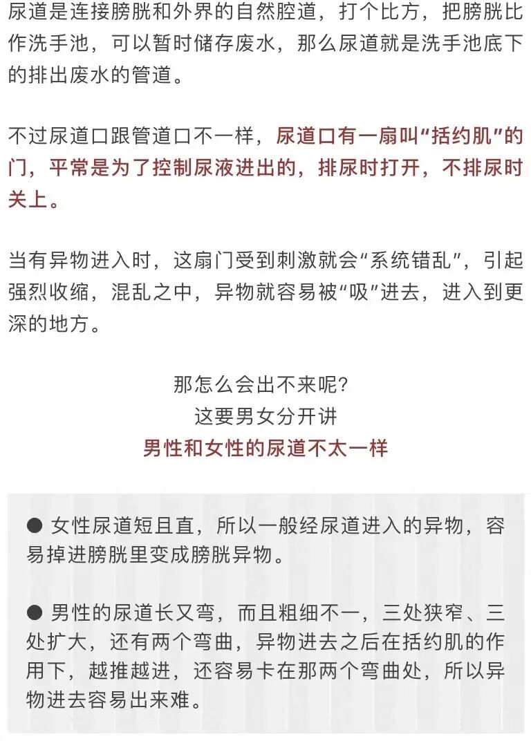 而且既然东西能进去怎么就出不来了呢?这就得从尿道本身说起了