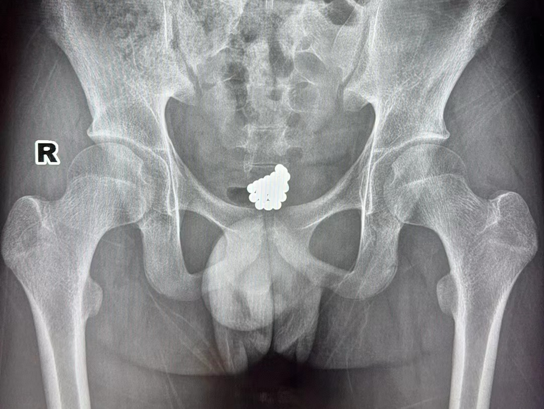 经过初步检查,小杰的尿道口呈现红肿的情况。随后,小杰又到放射科进行了详细检查。这一查,让在场的医生也不禁一愣,一坨小珠子堆积在小杰的盆腔区域,看样子还不少啊。