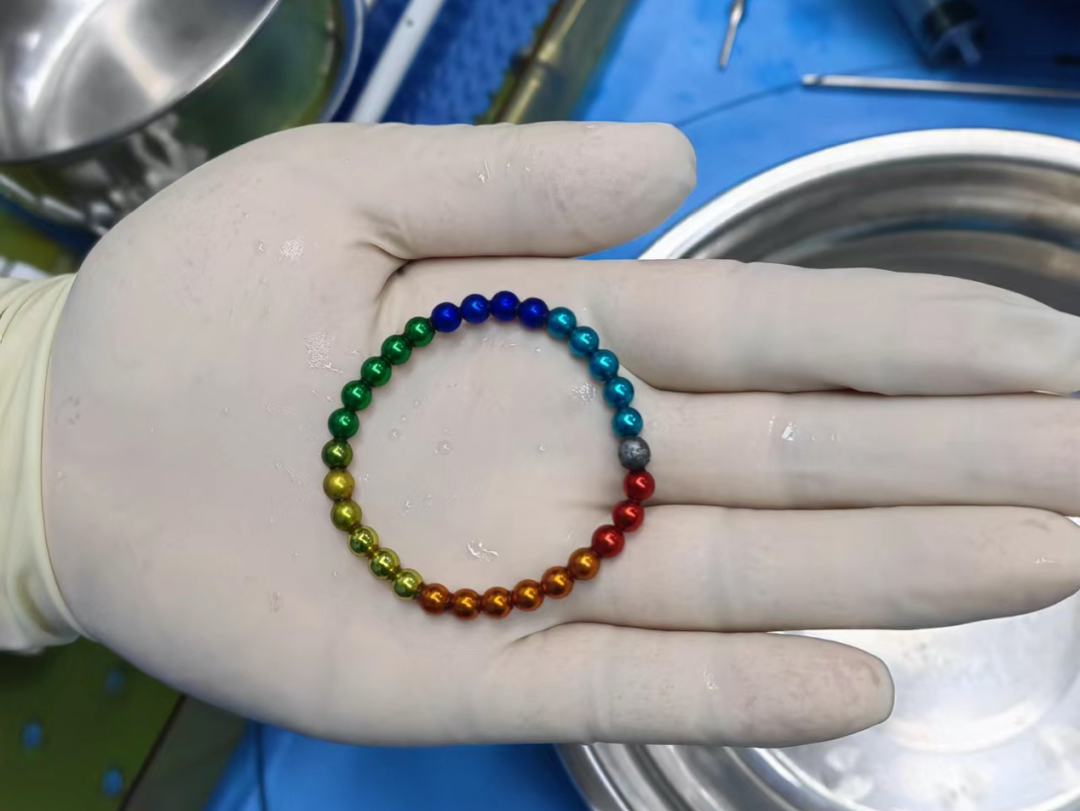 “万事开头难”,开了头后面就顺畅多了。取出第一颗珠子之后,医生很快又顺利取出一串珠子,手术经历大概半小时,珠子全部被取出。术后,手术团队一数,珠子竟然有整整30颗。