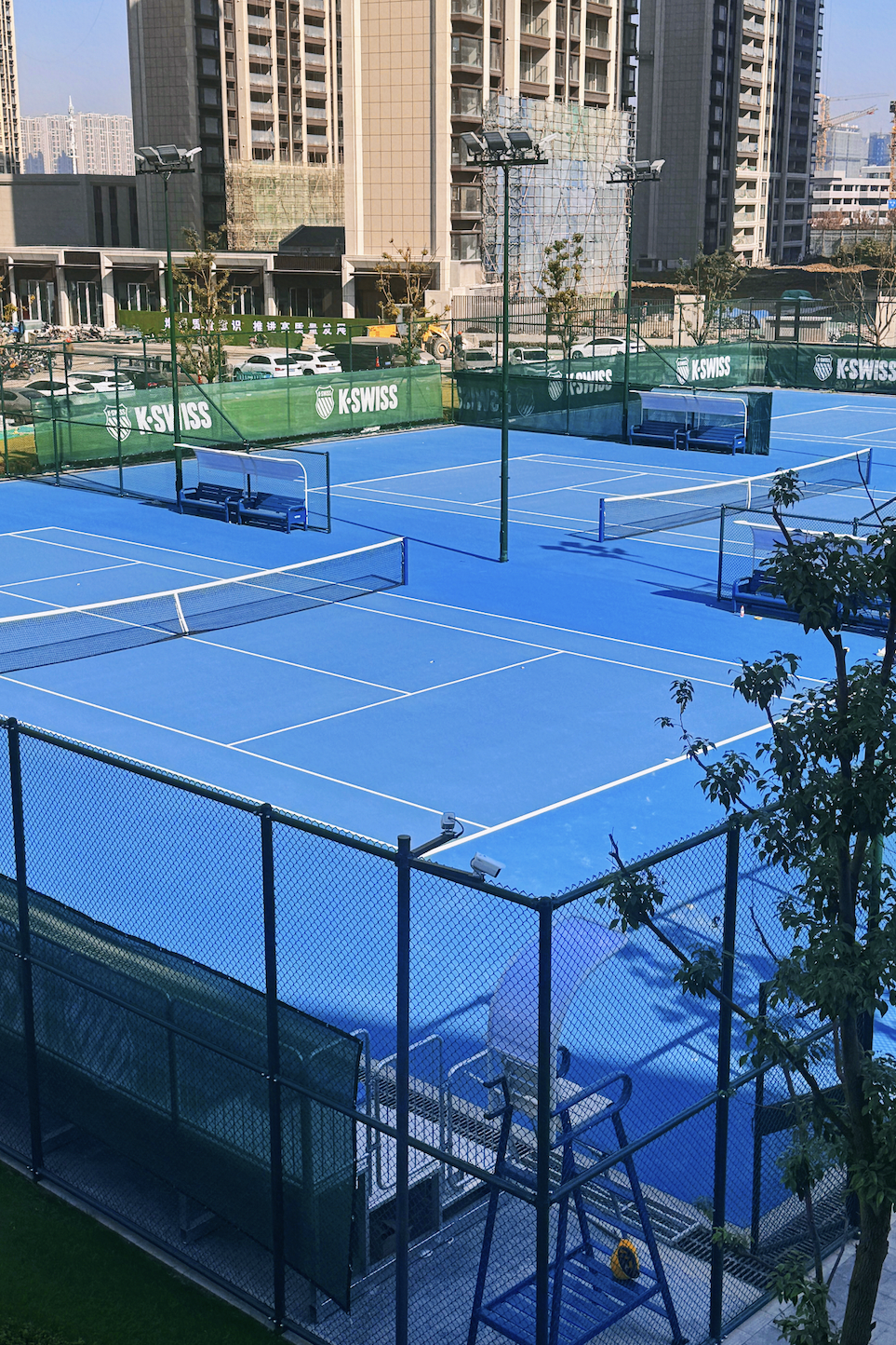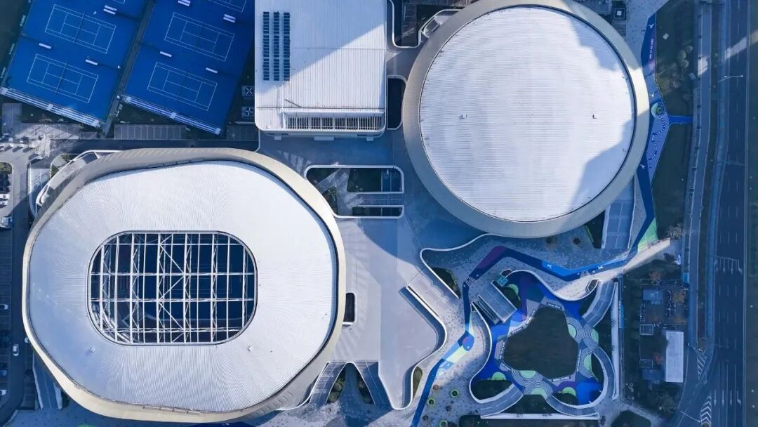 无锡国际网球中心场馆,建筑面积约45900㎡,包括了一座可容纳5000人的华发中心球场、一座可容2500人的世界跆拳道无锡中心、一座室内2片标准网球训练馆、6片室外网球场以及一座下沉式广场和配套商业。