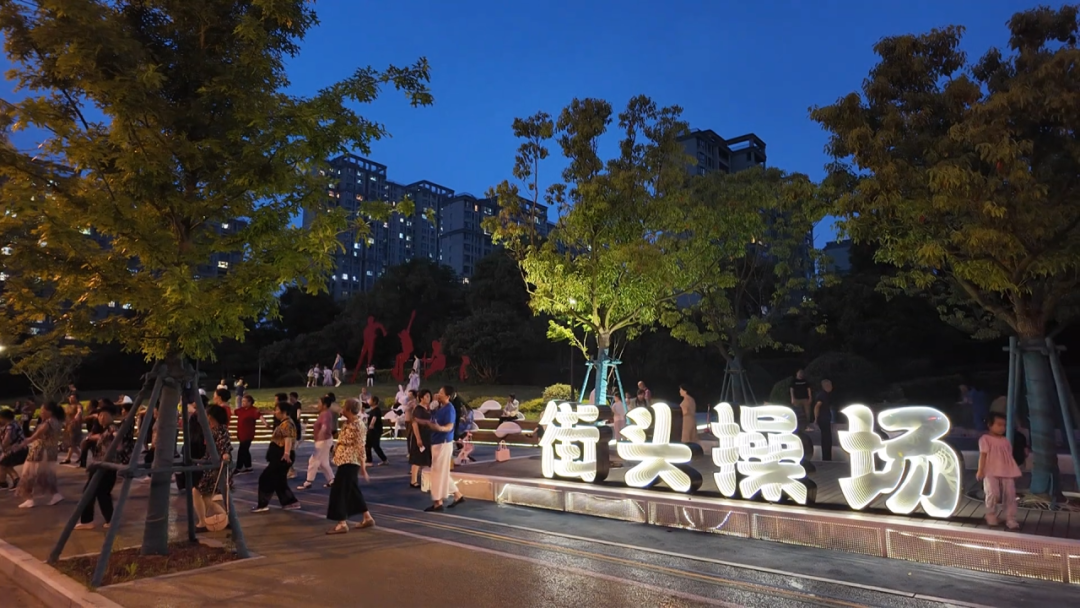 经常能看到市民们健身热闹的场景