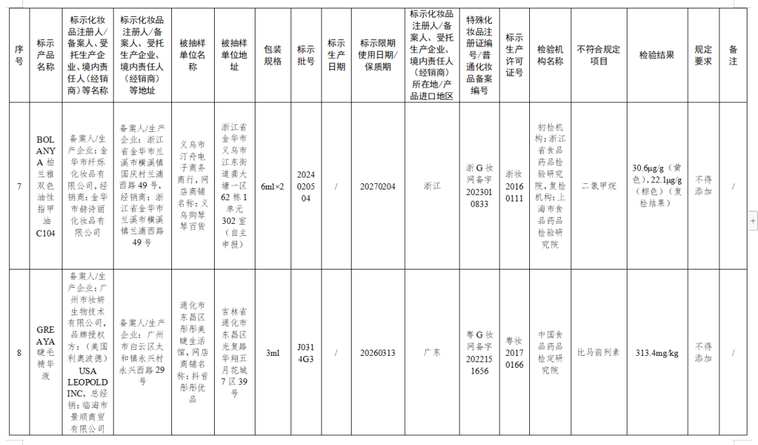根据《化妆品监督管理条例》《化妆品生产经营监督管理办法》《化妆品抽样检验管理办法》,国家药品监督管理局要求浙江省、广东省药品监督管理部门对上述不符合规定化妆品涉及的注册人、备案人、受托生产企业依法立案调查,责令相关企业立即依法采取风险控制措施并开展自查整改。各省(区、市)药品监督管理部门责令相关化妆品经营者立即停止经营上述化妆品,依法调查其进货查验记录等情况,对违法产品进行追根溯源;发现违法行为的,依法严肃查处;涉嫌犯罪的,依法移送公安机关。