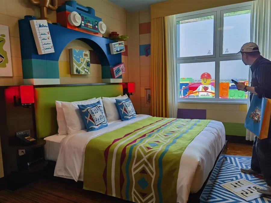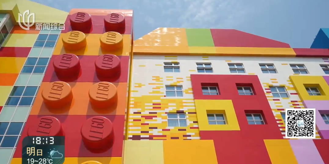 乐高乐园酒店位于整个乐园的入口处,是一栋六层建筑,外墙是经典的乐高缤纷色块,就像是搭出来的巨型乐高积木。