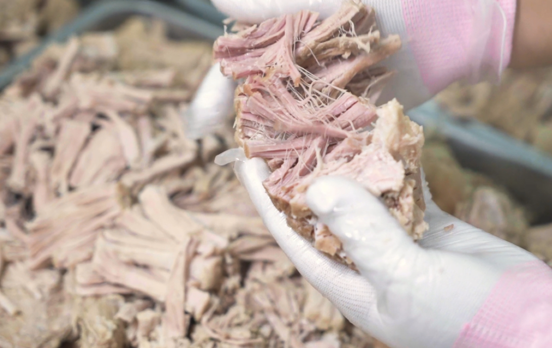“制作传统肉松要经过选材、煮制、炒松、搓松、收酥等多道工序,每个环节都对火候、时间、手法有很高的要求。”滑丹丹还记得创业最初两个月起早贪黑的日子。最挫败的一次,一锅50斤的猪肉因控温失误全部炒焦,数千元打了水漂。她一遍遍调整工艺,记录每一次失败的原因,甚至自建了一个小实验室,用科学方法分析蛋白质变性、美拉德反应等对风味的影响。“传统不是照搬,而是理解背后的原理,再把它用现代方式表达出来。”