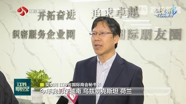 江苏省国际商会秘书长吴文闻说:“今年我们在越南、乌兹别克斯坦、荷兰、柬埔寨新建省国际商会驻海外联络处,目前总数已达12家,覆盖东南亚、欧洲、中亚等重点市场,方便企业随时能获取当地市场信息,对接资源更加高效。”