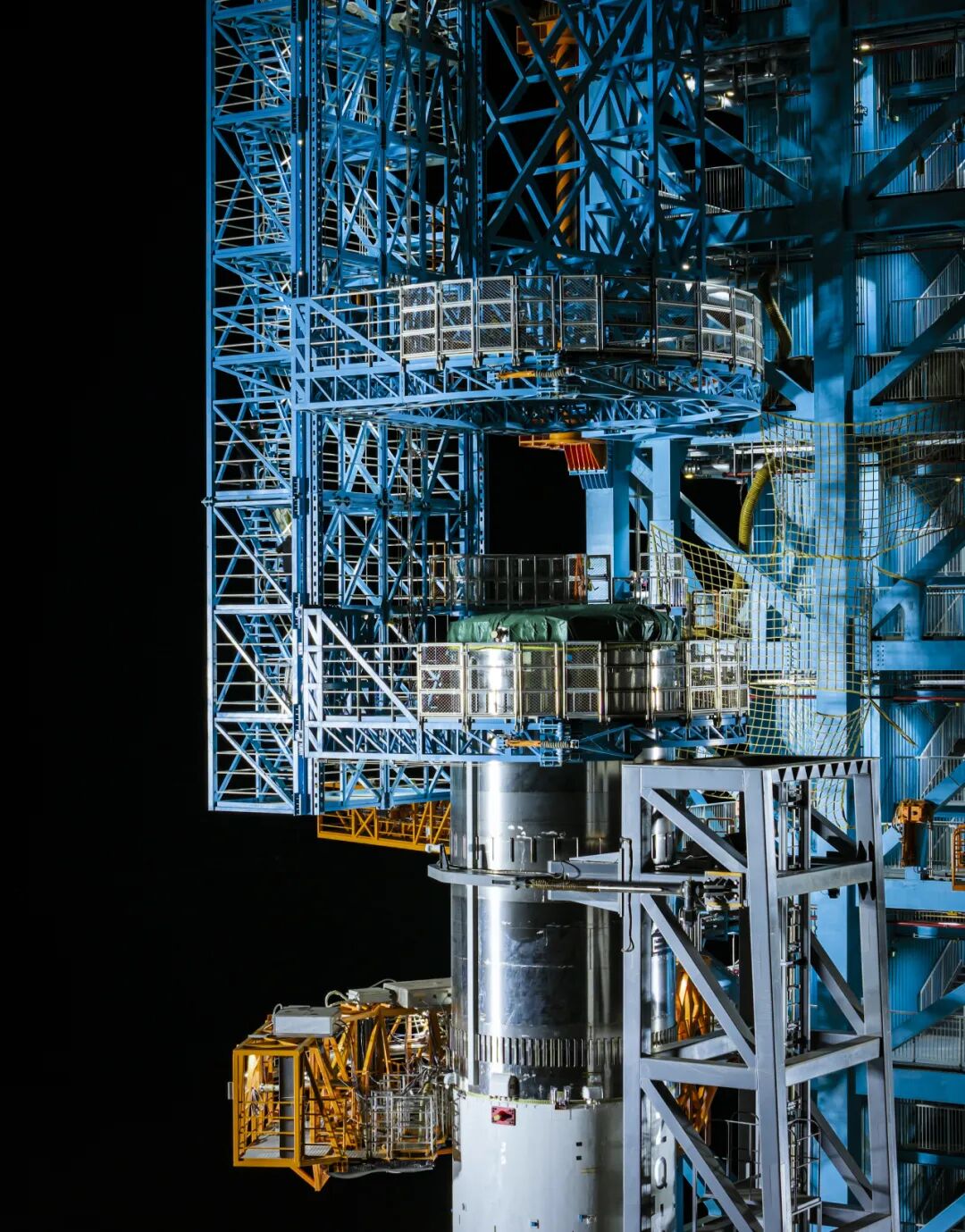 据介绍,一级段完成任务后的回收将非常丝滑,落点控制可以在米级。这个难度相当于从100层楼上要将一支笔扔进地上的一个普通笔筒里。要做到这么精细调整和精准对位,关键就在于一级段尾部的九机并联动力系统。该系统目前已完成地面热点火试验,总推力突破7500千牛,刷新了中国商业液体火箭试验的纪录。