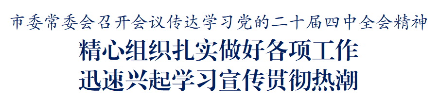 会议强调,要深入学习领会、把握精髓要义,把学习贯彻党的二十届四中全会精神同学习贯彻习近平总书记对江苏工作重要讲话精神结合起来,同本地区本部门实际结合起来,更加清晰准确地把握党中央对我国发展环境的总体判断、发展方针的清晰指引、发展目标的科学安排,以更加坚定的决心、更为有力的举措,进一步统一思想、统一意志、统一行动。要抓紧对上衔接、全面组织发动,围绕中央、省委对于学习宣传贯彻的具体布置,精心做好我市的学习教育、宣讲宣传、调查研究、贯彻落实等计划安排;全市各级党委(党组)要抓好各平台、各条线、各领域的组织发动,扎实务实做好学习宣传贯彻各项工作。要坚持干字当头、抓好全年收官,以学习贯彻党的二十届四中全会精神为强大动力,紧抓当前、抓好当前,更有针对性地稳就业、稳企业、稳市场、稳预期,坚决完成全年目标任务和实现“十四五”圆满收官;深入排查化解各领域风险隐患,加强社会治安整体防控,确保社会大局和谐稳定;紧盯国家和省级层面“十五五”规划编制动向,积极做好对上争取工作;继续坚持开门问策、集思广益,把各方智慧转化为无锡“十五五”发展的“施工图”。
