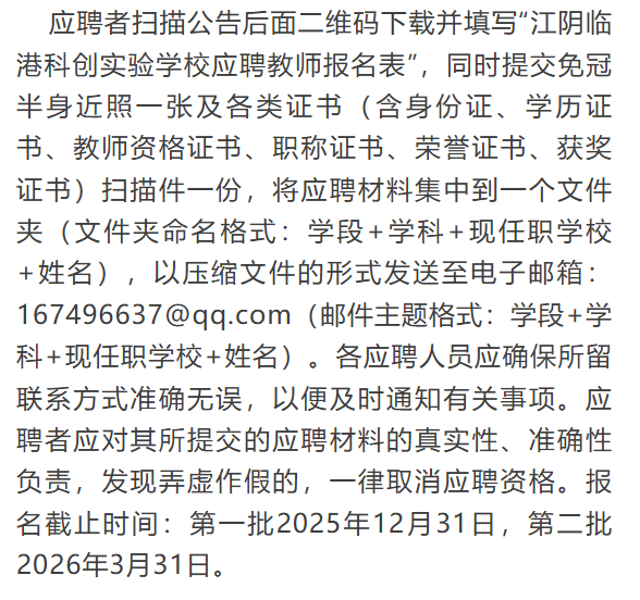 近日,江阴临港科创实验学校发布招聘信息↓↓↓
