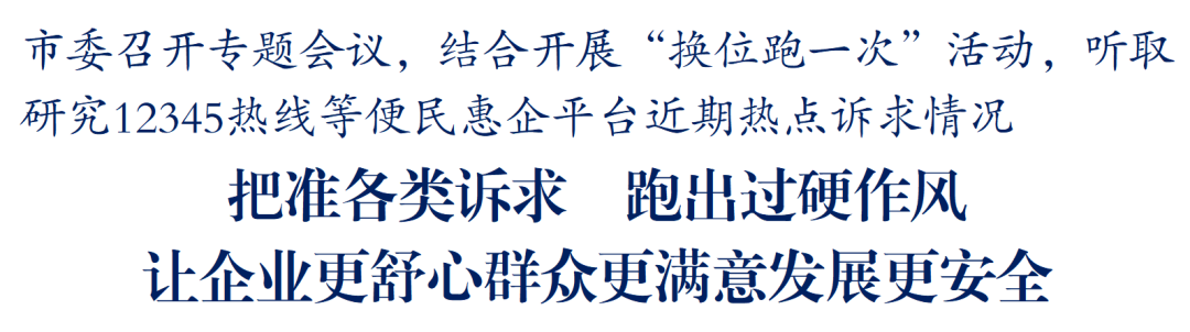 会议强调,12345热线等便民惠企平台作为听民声、察民情、解民忧的重要渠道,是确保“换位跑一次”活动取得实绩实效的有力支撑。全市各级各部门特别是领导干部要结合“换位跑一次”活动,靠前体验、实时了解便民惠企平台的运行情况,全面掌握热点诉求,以实践维度检验担当,以群众立场衡量成效,以企业视角倒逼改革,真正做到问题不遮掩、整改不拖延、成效可感知。