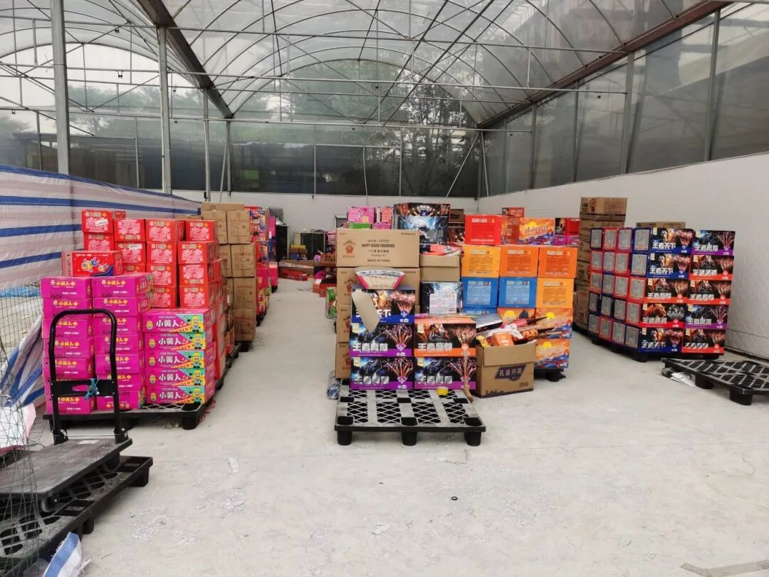 12月2日上午,根据群众举报线索,顺德区勒流街道某仓库内疑似储存有大量烟花爆竹,经过进一步侦查,顺德区勒流街道应急办、派出所采取联合行动,安排执法人员前往涉事地点进行突击检查。现场查获印有“山河揽月”“孔雀开屏”“哪吒加特林”“炸花火箭”等字样的烟花870箱,合计7580kg。由于涉事地点位于农业片区,而且储存数量较大,一旦发生意外,后果不堪设想。
