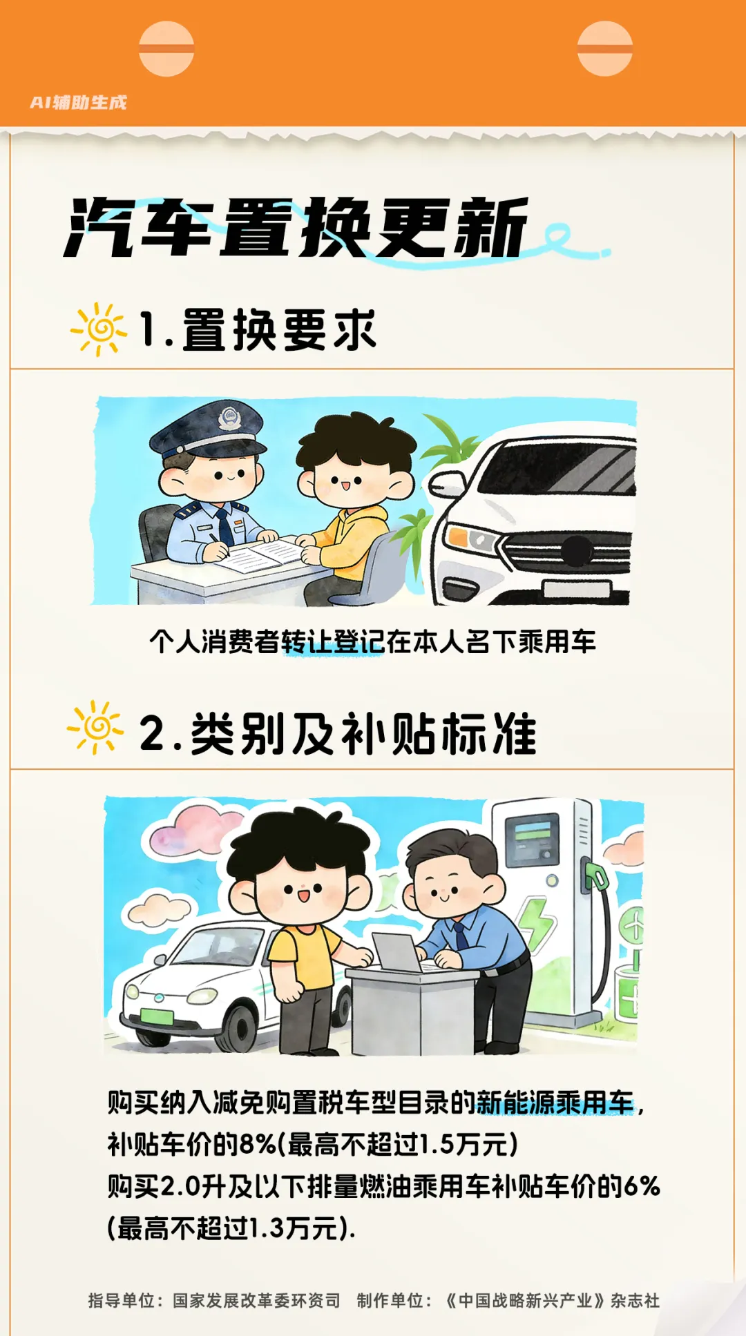 不管是报废旧车换新车,还是直接置换旧车买新车,都有补贴,新能源和燃油车都覆盖。