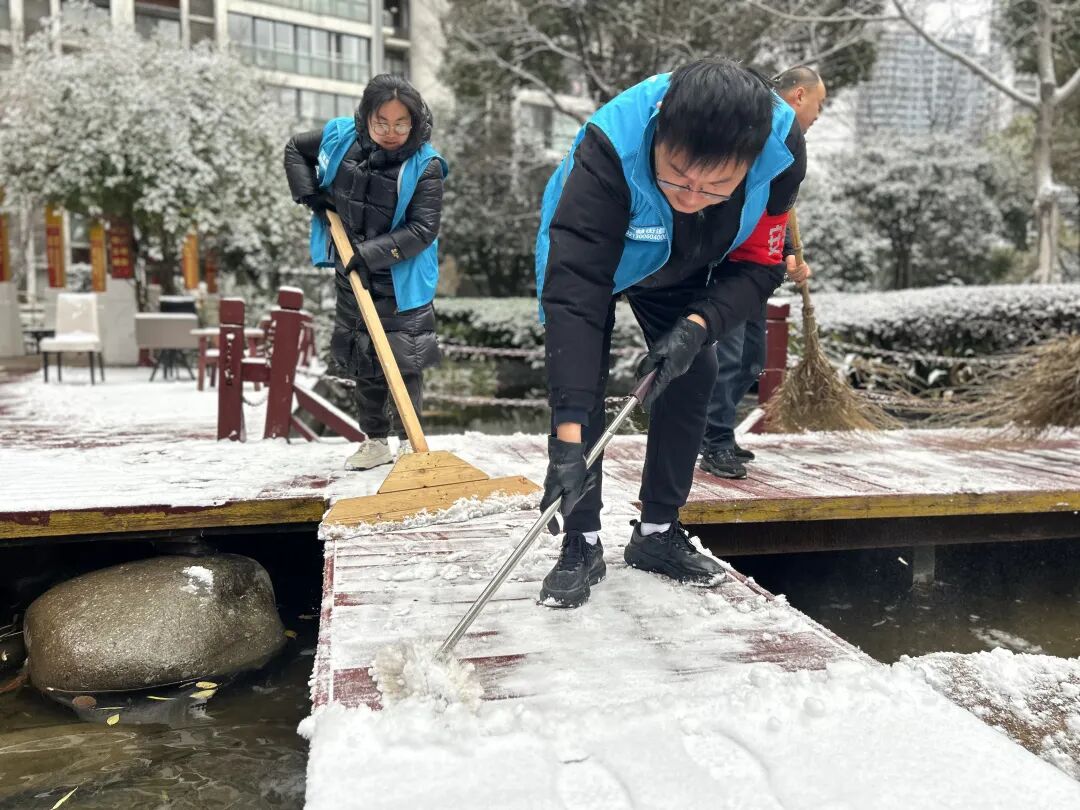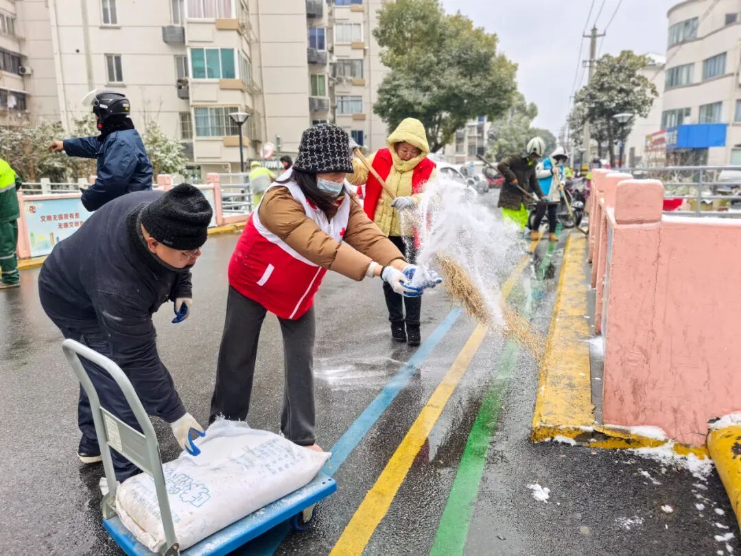 为切实保障辖区群众脚下安全,惠峰社区以雪为令、迅速响应,组织工作人员、物业人员、党员志愿者及热心居民组建清雪队伍,开展全方位扫雪撒盐除冰行动,用实干为寒冬注入暖流。