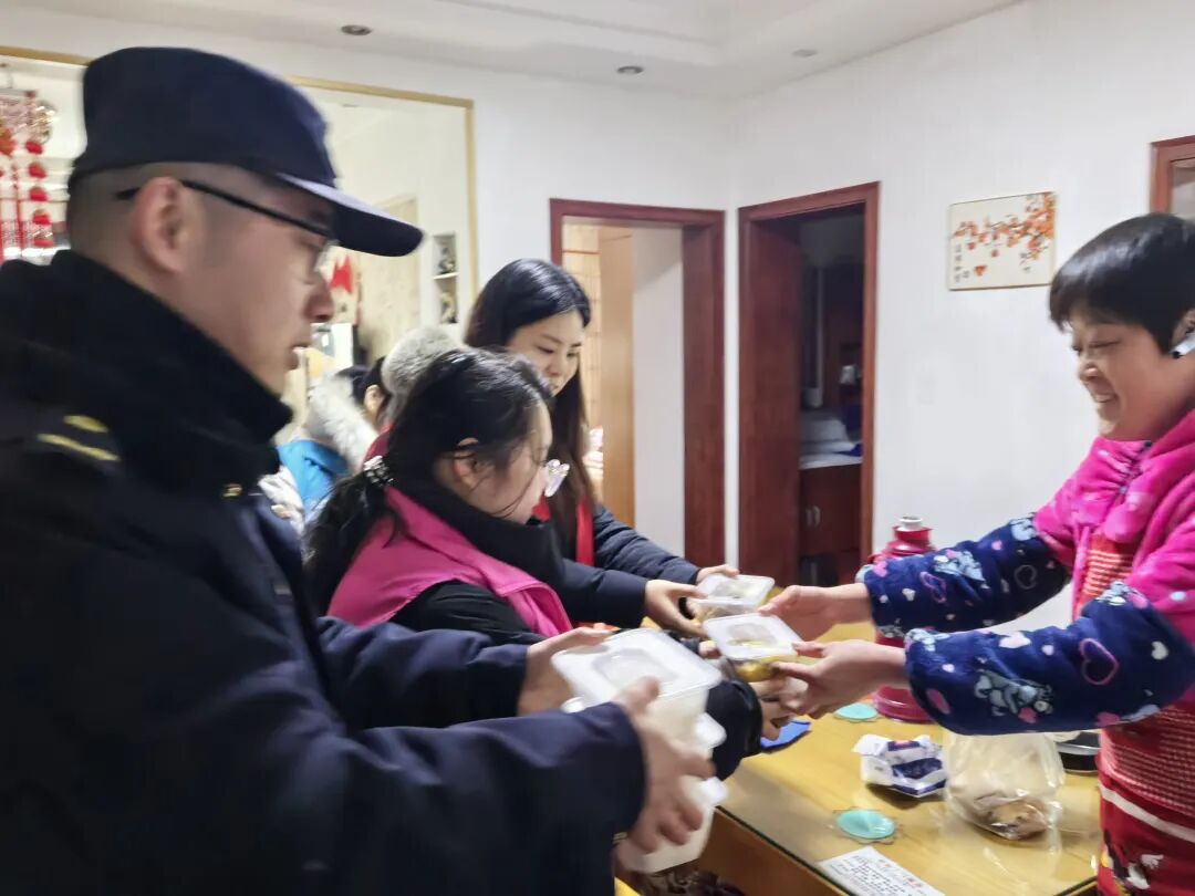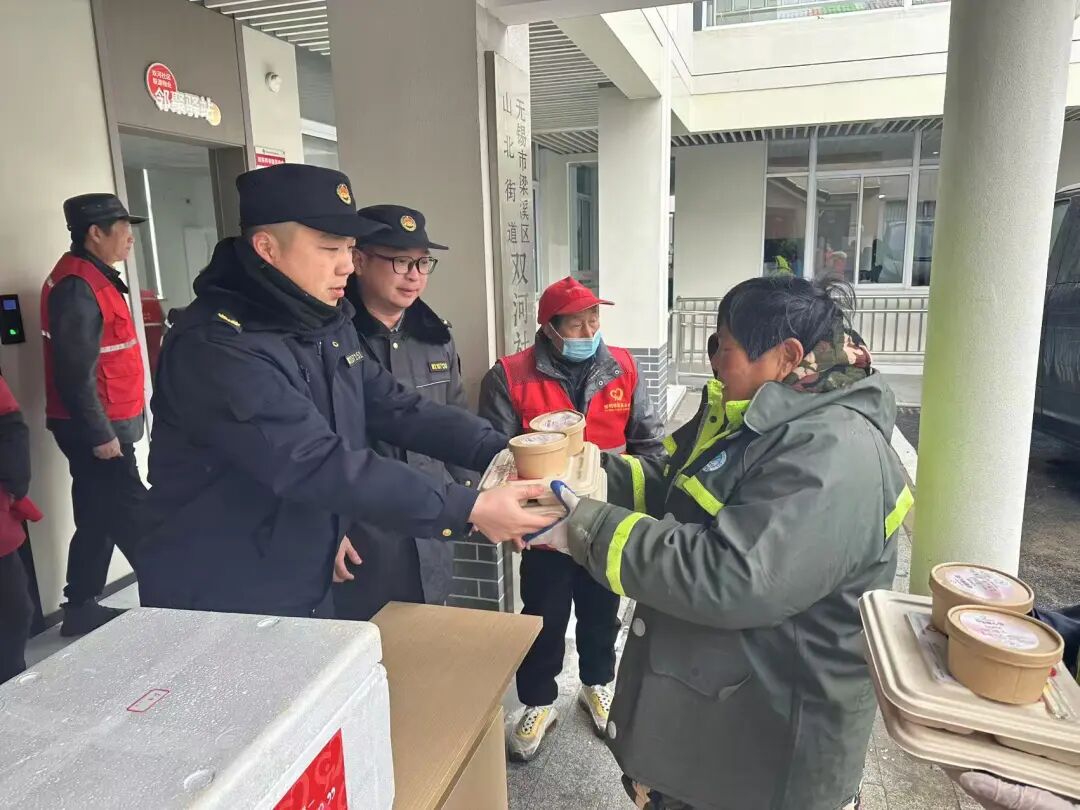 梁溪城管山北中队迅速联合双河社区、普明慈善基金会,开展暖心慰问行动。他们顶风冒雪,为社区里的老人们送去热气腾腾的餐食。每到一处,都细心询问老人需求。这一行动不仅温暖了老人的胃,更解决了子女们的后顾之忧,让爱在寒冬中持续传递。