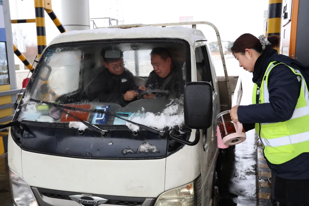 扬名街道清一社区工作人员将冒着热气的姜茶递给正在休息的快递师傅,一杯姜茶成了温暖的传递站,驱散了冬日的寒气。