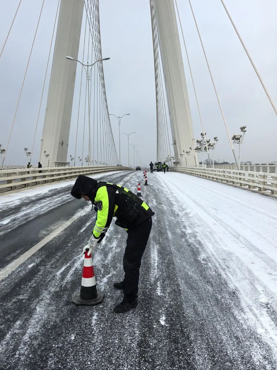 工作人员坚守在扫雪除冰一线