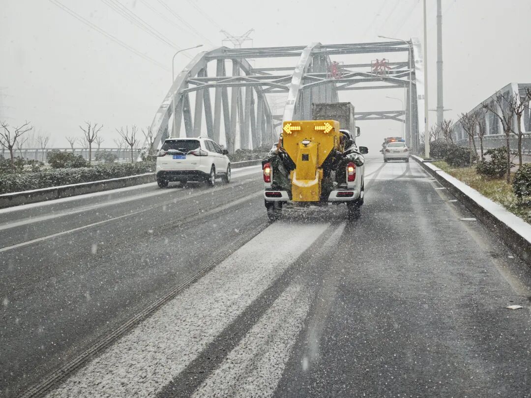 禧宝从市市政和园林局下属市政设施管理中心获悉,为应对这场风雪,多支应急队伍已彻夜未眠。今晨2点,我市雪量转大,至4点时,凤翔北高架、江海西高架部分路段出现积雪情况,市政队伍直面风雪,赶在5点半前完成作业。