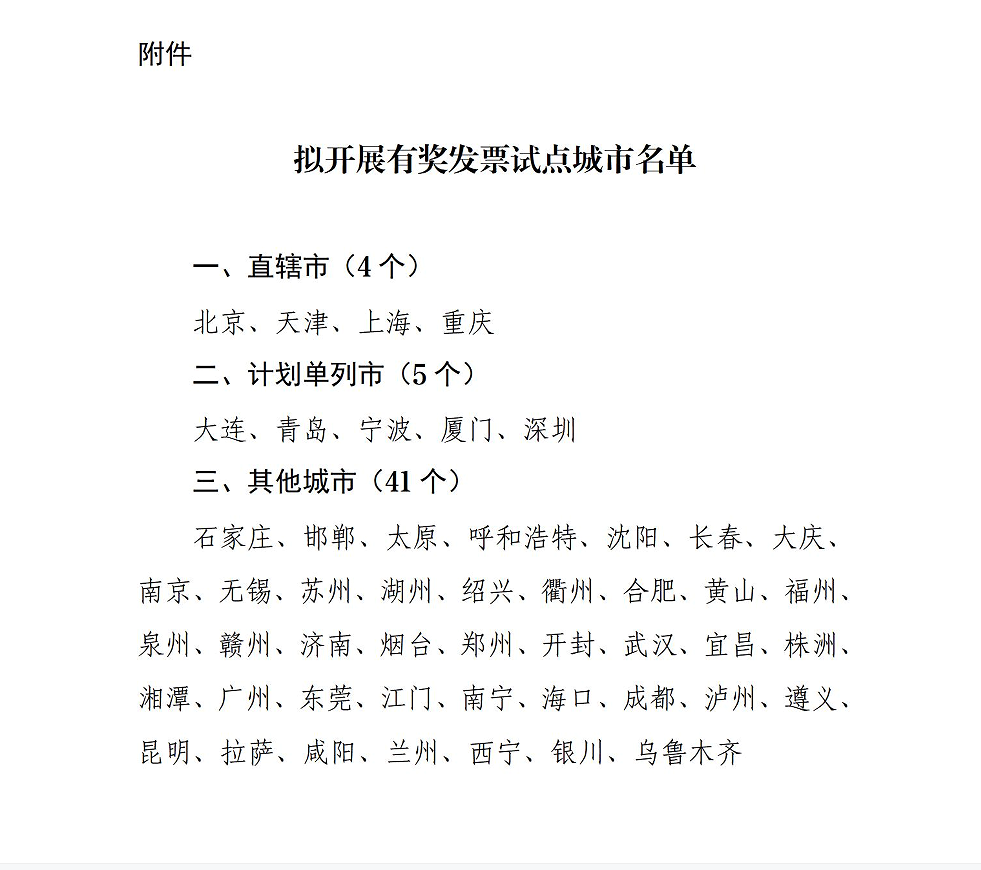 支持50座城市开展有奖发票试点工作