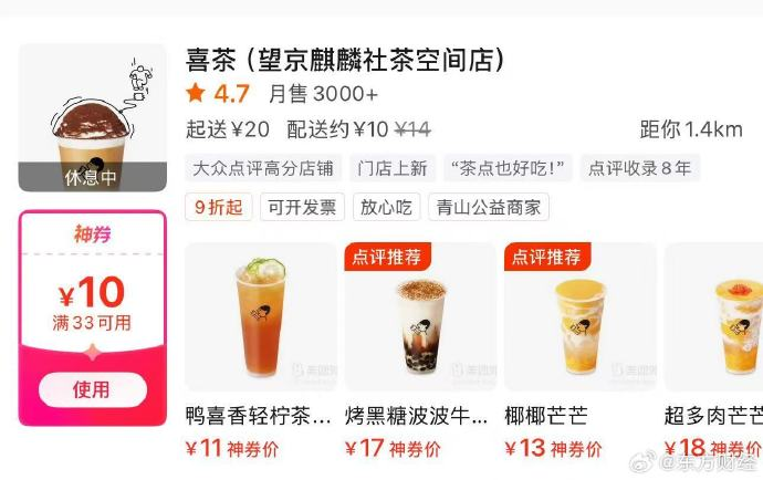 此外,据东方财经援引凤凰网科技消息,记者查询发现,多家奶茶门店因单量过多,已经选择临时闭店。