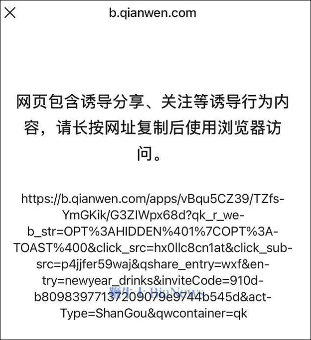 同时,部分用户在千问APP点击分享活动至微信好友时,已自动改为复制口令形式。