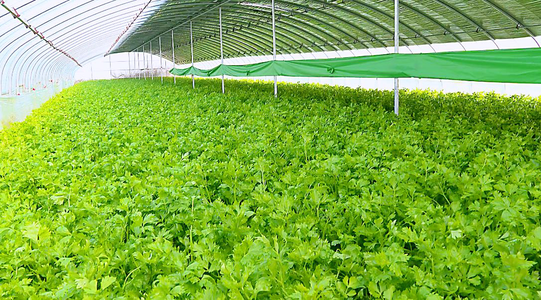 在沛县敬安镇娇锦蔬菜种植家庭农场,一座座温室大棚整齐排列。掀开厚实的门帘走进大棚,暖意裹着芹菜的清香扑面而来,满棚翠色欲滴。