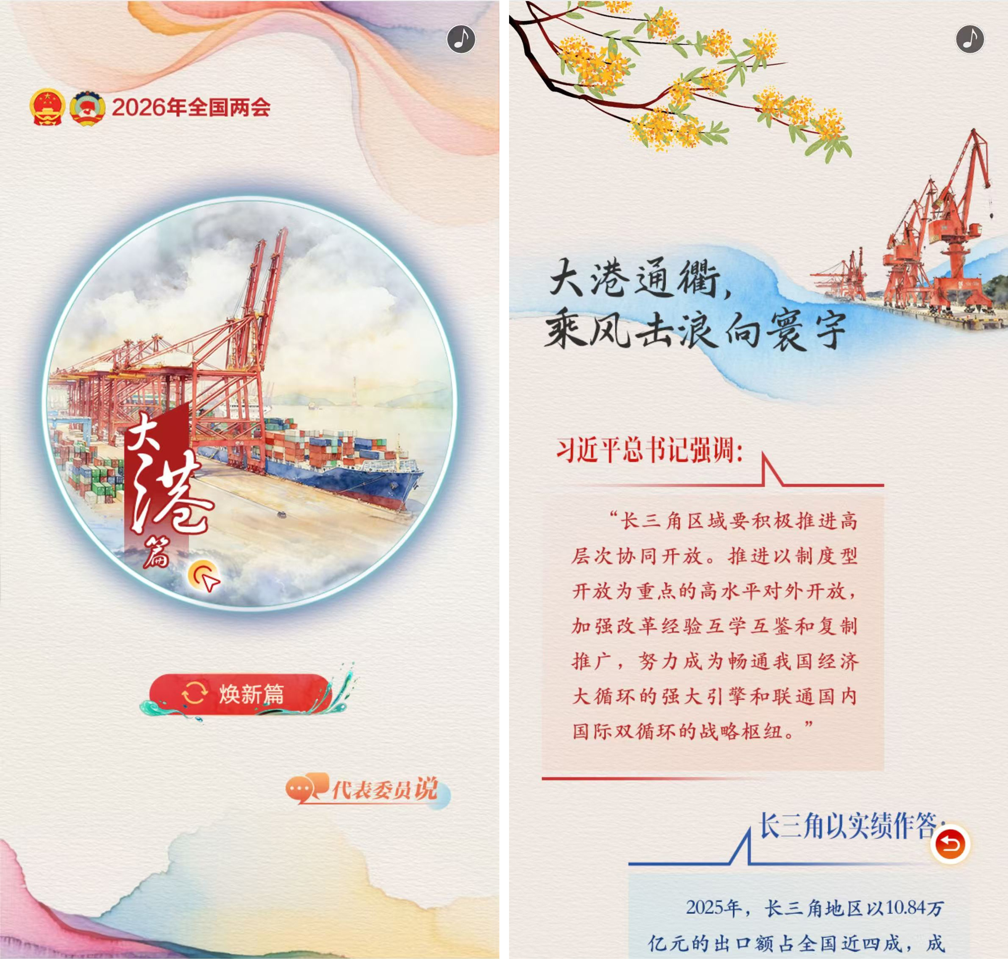 看,大江滔滔、大河奔流、大城璀璨、大港扬帆、大时代澎湃。上海、江苏、浙江、安徽四地,正以山河为笔,以奋进为墨,庄重作答总书记之约……