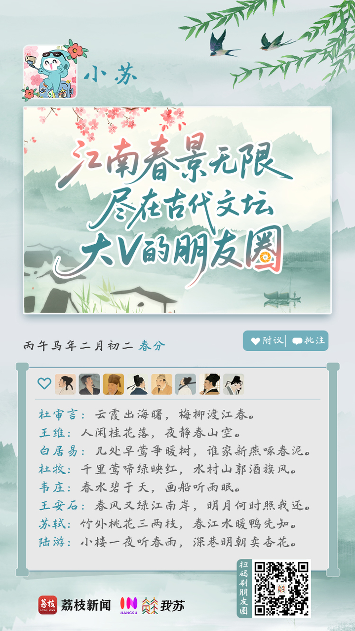 江南春景无限,尽在这些穿越时空的“朋友圈”里,等待着读诗人在春天相遇。