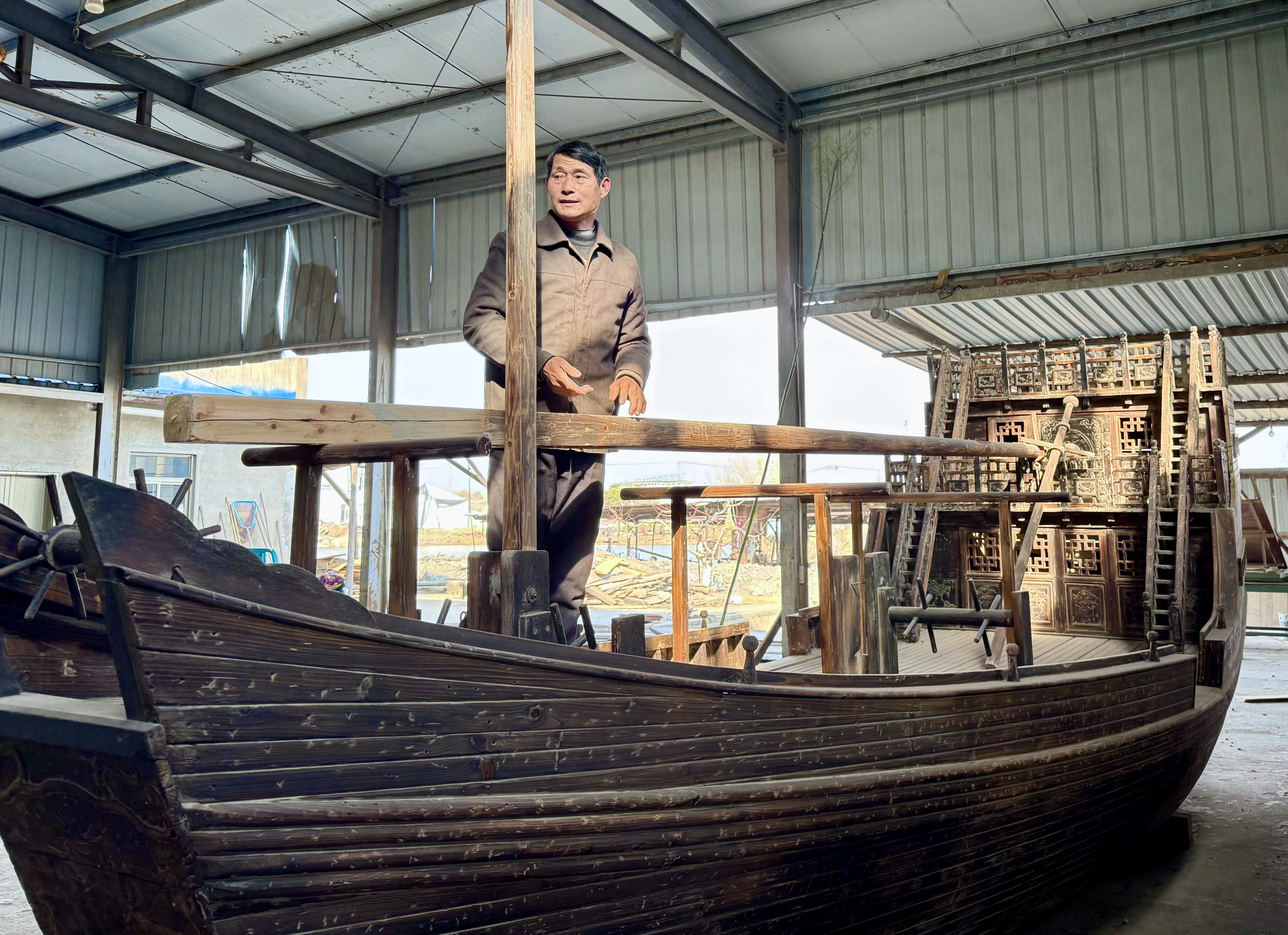 如今,在竹泓镇木船文化产业园区内,堆积如山的木料见证着每一艘木船的诞生,匠人们依然以一到两个月的周期精心打磨每一艘木船,让它们成为独一无二的艺术品,将这份古老的技艺代代相传。