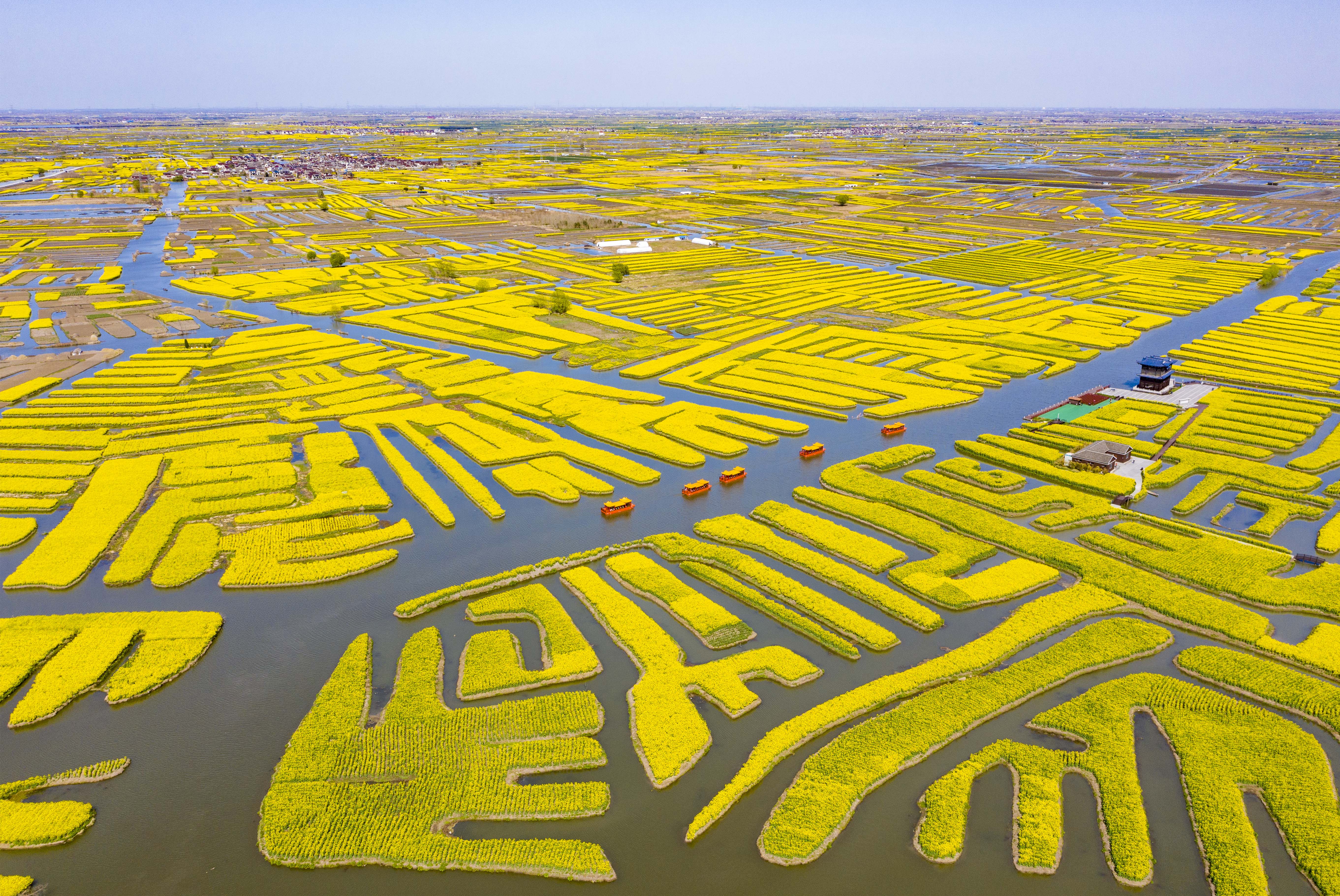 春日时节,走进千垛景区,湖底淤泥垒筑的岛式垛田错落有致,金黄的菜花铺满沃野,碧波荡漾其间,晨雾氤氲,落日流光。这份生态之美,不仅在于观赏,更在于守护。为了让垛田风光常新,当地持续优化油菜品种与种植布局,让“大地调色盘”始终保持鲜活生命力。