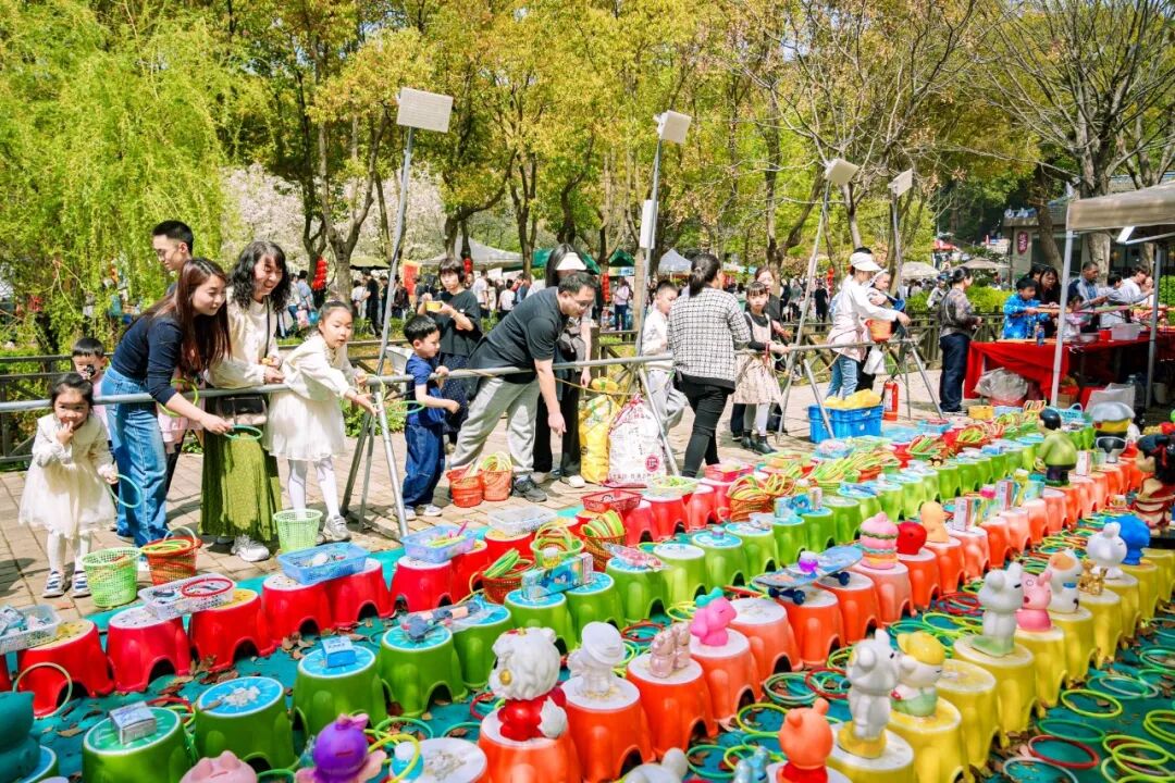 文创区,泥人师傅三下两下就“捏”出一个孙悟空;游戏互动区,套圈、抓小鸡、碰碰车,孩子们和大人一起玩得正嗨,个个笑得合不拢嘴;服装百货摊前,大姨们挑挑拣拣,讨价还价的声音此起彼伏......