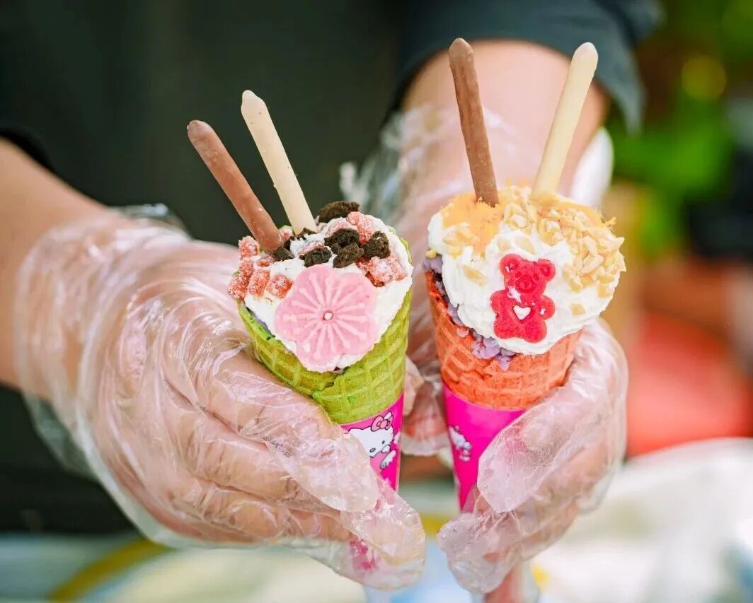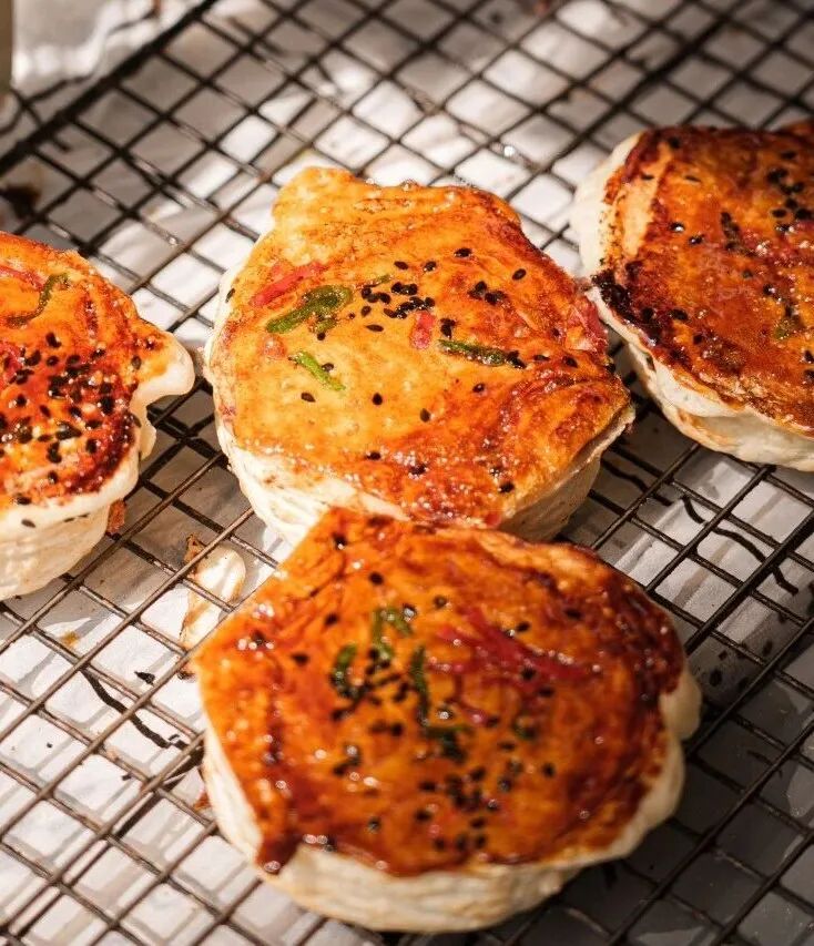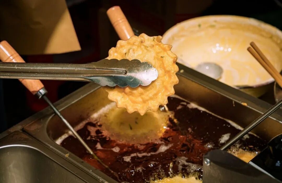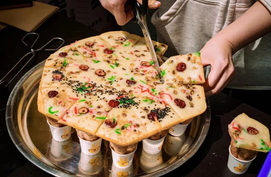 美食摊前,空气里全是让人流口水的味道。萝卜丝饼在油锅里滋滋作响,海棠糕刷上糖浆亮晶晶的,香辣海鲜饼、糯叽叽年糕,勾得人口水直流......