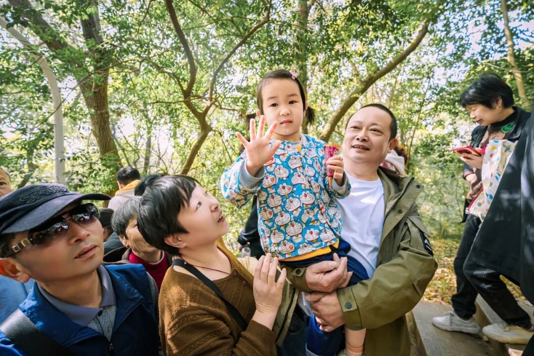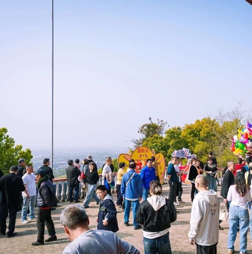 市民游客们登上鸿山踏青