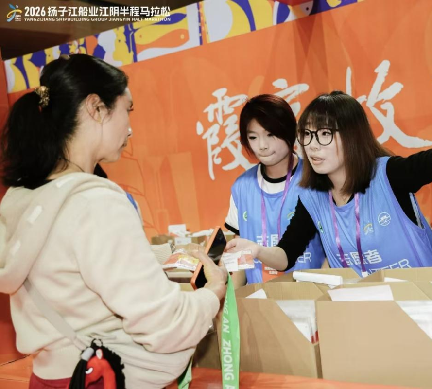 来自江阴职业技术学院的2054名学生志愿者,构成了本届赛事最澎湃的青春底色。他们经过系统的岗前培训、岗位模拟与动线演练,最终分布在存取包、检录引导、赛道补给、完赛物资发放等56个细分岗位上。他们累计贡献服务时长超过10000小时,用朝气与热情,为赛事注入最鲜活的生命力。